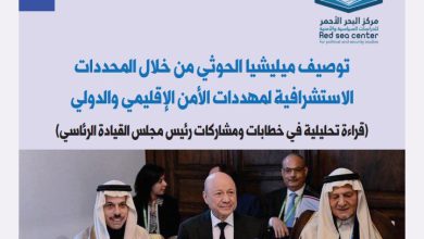 11 أبريل، 20260مركز البحر الأحمر للدراسات يصدر قراءة تحليلية بحثية بعنوان: “توصيف مليشيا الحوثي في ضوء المحددات الاستشرافية لتهديدات الأمن الإقليمي والدولي” وذلك من خلال تحليل الخطابات والمشاركات الرسمية لفخامة رئيس مجلس القيادة الرئاسي