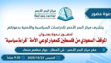 ندوة سياسية ينظمها مركز البحر الأحمر للدراسات تناقش ”الموقف السعودي من فلسطين كمعيار لوعي الأمة”