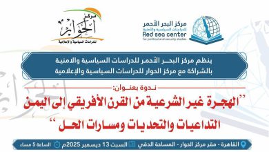 غداً في القاهرة: مركز البحر الأحمر للدراسات ينظم بالشراكة مع مركز الحوار ندوة حول ”الهجرة غير الشرعية من القرن الأفريقي إلى اليمن..التداعيات والتحديات ومسارات الحل”