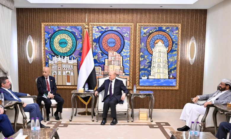 العليمي والعرادة يلتقون السفير الأمريكي: الرئيس يؤكد إن إنهاء التهديد الحوثي يتطلب هزيمتهم وتجريدهم من الأرض والمال والسلاح