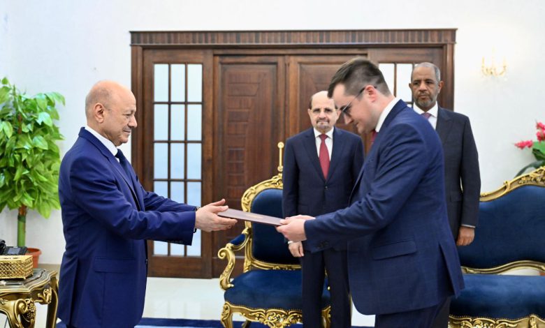 عدن: رئيس مجلس القيادة يتسلم اوراق اعتماد سفير روسيا الاتحادية