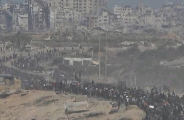 وتوجه عشرات الآلاف من الفلسطينيين إلى مدينة غزة عبر شارعي “صلاح الدين” و”الرشيد”، بعد إعلان جيش الإحتلال الإسرائيلي دخول وقف إطلاق النار حيز التنفيذ في تمام الساعة 12:00 (بالتوقيت المحلي) ظهر اليوم الجمعة.