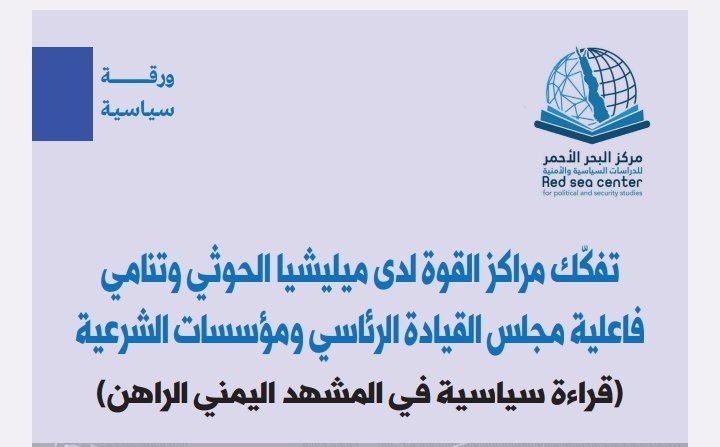 صدر اليوم الخميس 27 نوفمبر 2025 عن مركز البحر الأحمر للدراسات السياسية والأمنية قراءة سياسة بحثية تحليلية معمقة حول المشهد اليمني الراهن بعنوان: ”تفكك مراكز القوة لدى مليشيا الحوثي وتنامي فاعلية مجلس القيادة الرئاسي ومؤسسات الشرعية..قراءة سياسية في المشهد اليمني الراهن”.