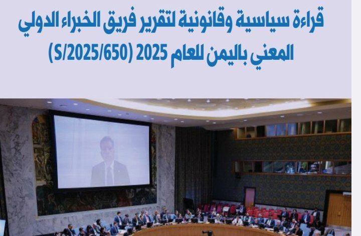 أصدر مركز البحر الأحمر للدراسات السياسية والأمنية، يوم الأربعاء 26 نوفمبر 2025 ورقة سياسية بعنوان: “قراءة سياسية وقانونية لتقرير فريق الخبراء الدوليين المعني باليمن لعام 2025 (S/2025/650)” .