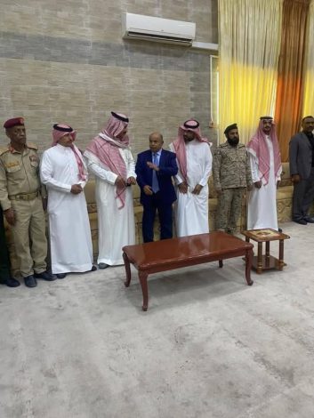 وكان في استقبال الوفد بمطار الريان محافظ حضرموت سالم الخنبشي، وقائد المنطقة العسكرية الثانية.