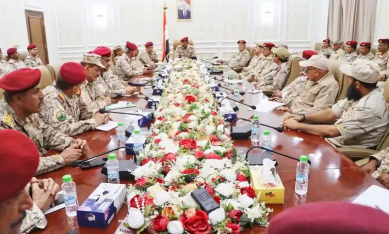 اجتماع عسكري موسع في عدن يناقش تنفيذ توجيهات وقرارات الرئيس بشأن توحيد التشكيلات العسكرية