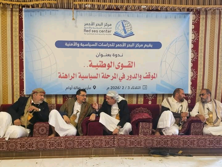عقد مركز البحر الاحمر للدراسات السياسية والأمنية، ندوة سياسية موسعة، اليوم الثلاثاء 3 فبراير 2026، في مدينة مأرب، حضرها العشرات من القيادات العسكرية والسياسية والقبلية، و الأكاديمية و الإعلامية والحقوقية تحت عنوان: ”القوى الوطنية..الموقف والدور في المرحلة السياسية الراهنة”.