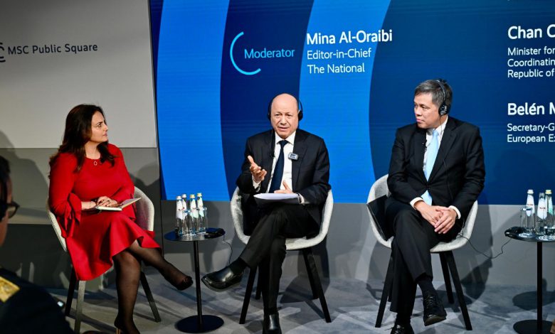 وقال الرئيس في جلسة حوارية حول امن الممرات المائية، ضمن فعاليات مؤتمر ميونيخ للأمن الدولي الذي انطلقت اعماله اليوم الجمعة” ان تحقيق الأمن المستدام للملاحة الدولية يتطلب نهجا مختلفا مع القضية اليمنية، بحيث يساعد على بناء مؤسسات الدولة الوطنية ويحقق الردع ضد الارهابيين، ولا يكتفي باحتوائهم أو تقديم الحوافز لهم”.