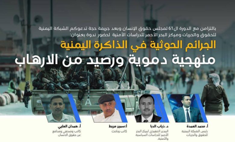 نظم مركز البحر الأحمر للدراسات السياسية والأمنية، والشبكة اليمنية للحقوق والحريات ندوة حقوقية هامة ، يوم الثلاثاء 17 مارس الجاري على منصة إكس.